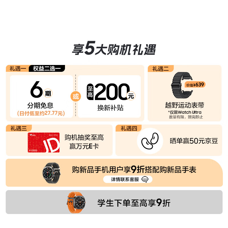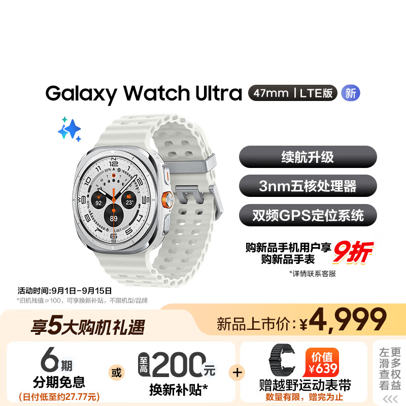 三星Galaxy Watch Ultra 智能手表/eSIM独立通话/运动电话手表/双频GPS定位 47mm 钛瓷白 男女表价格:4999.00元!
