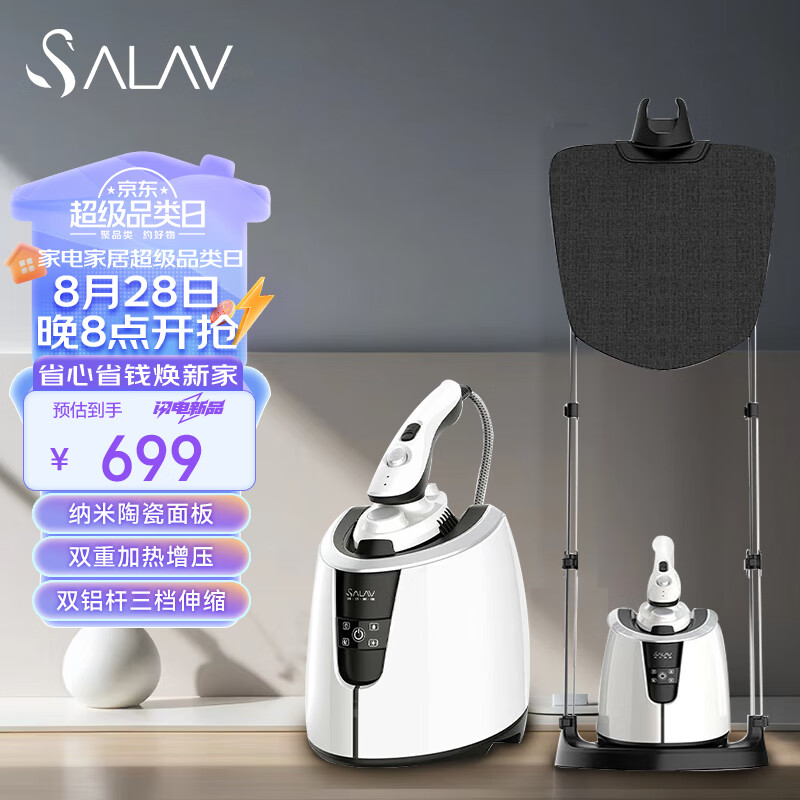 贝尔莱德(SALAV)挂烫机家商两用双铝杆手持熨烫机大功率蒸汽电熨斗挂烫机服装店ST220(白色)价格:699.00元!