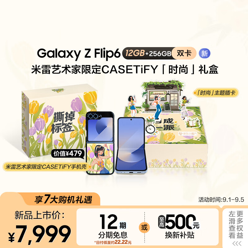 三星(SAMSUNG)Galaxy Z Flip6 AI手机 5000万像素 双卡 折叠屏手机 米雷艺术家限定「时尚」礼盒 12+256G 夏沫蓝价格:7999.00元!