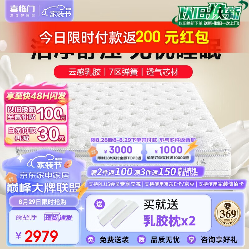 喜临门床垫 2cm高纯乳胶7区分区弹簧床垫透气芯材床垫 白骑士pro1.5x2米价格:3499.00元!