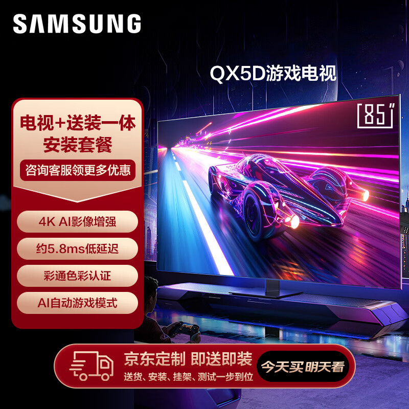 三星(SAMSUNG)85QX5D 85英寸【送装一体版】QLED量子点 专业游戏AI电视 彩通色彩 【服务套装】送装一体含挂架价格:10649.00元!