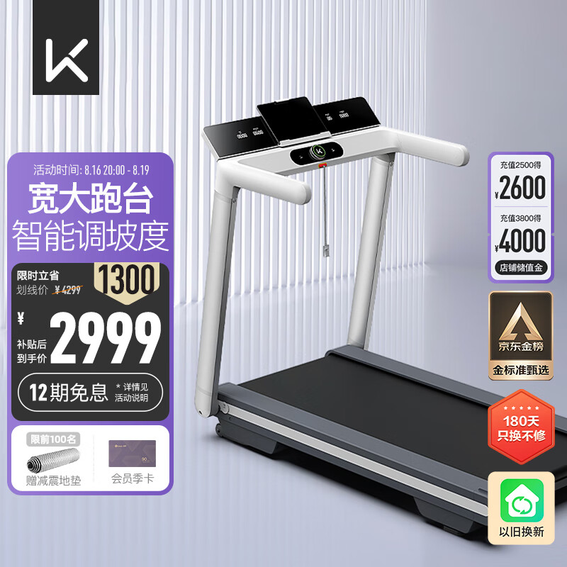 Keep跑步机家用健身器材 智能坡度调 宽大跑台走步机 家庭锻炼K4白价格:3699.00元!