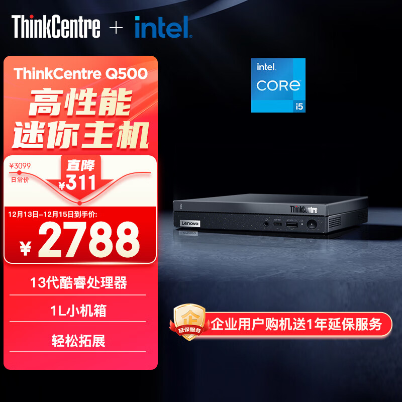 联想ThinkCentre Q500 mini迷你主机13代酷睿i5高性能娱乐办公台式机电脑主机(i5-13420H 16G 512G SSD)价格:2788.00元!