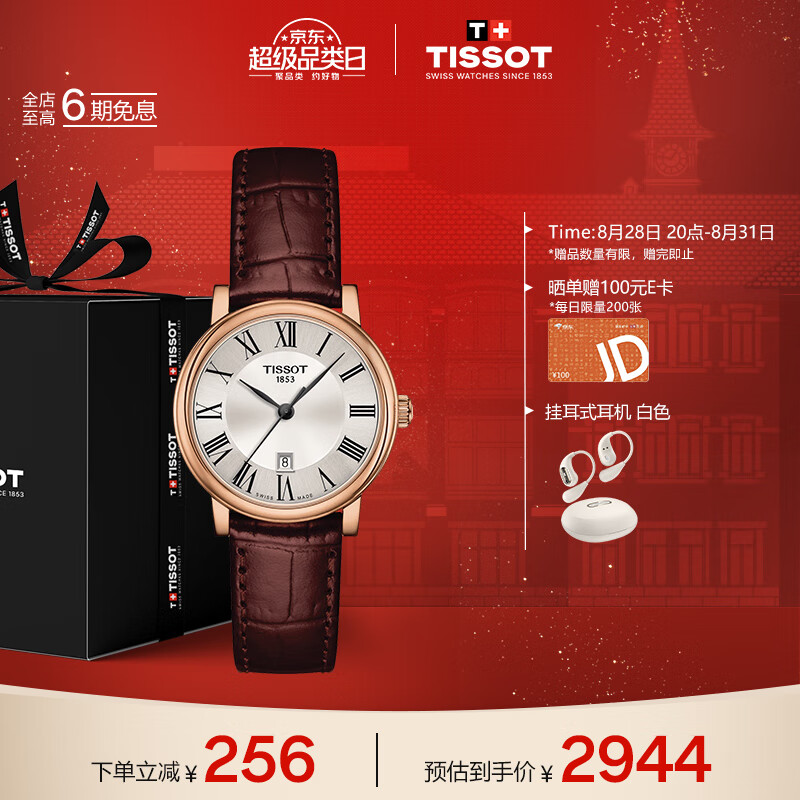 天梭(TISSOT)瑞士手表 卡森臻我系列腕表 皮带石英女表 T122.210.36.033.00价格:3200.00元!