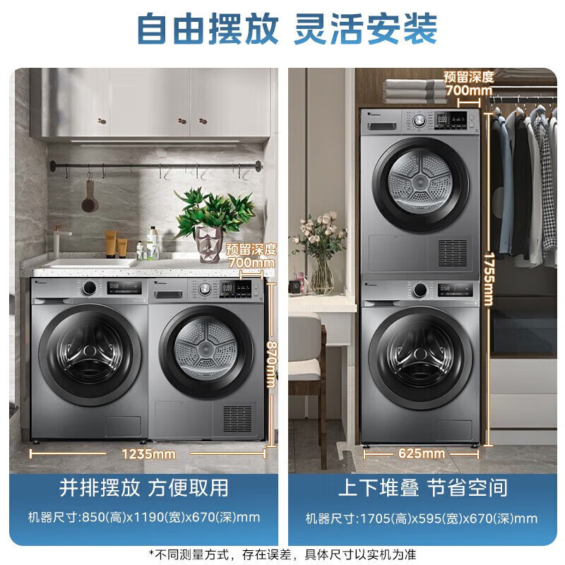 小天鹅(LittleSwan)洗烘套装10公斤滚筒洗衣机+热泵烘干机家用 除菌除螨晒被子洗烘套装浣彩系列YQ2+H032WY价格:4698.00元!
