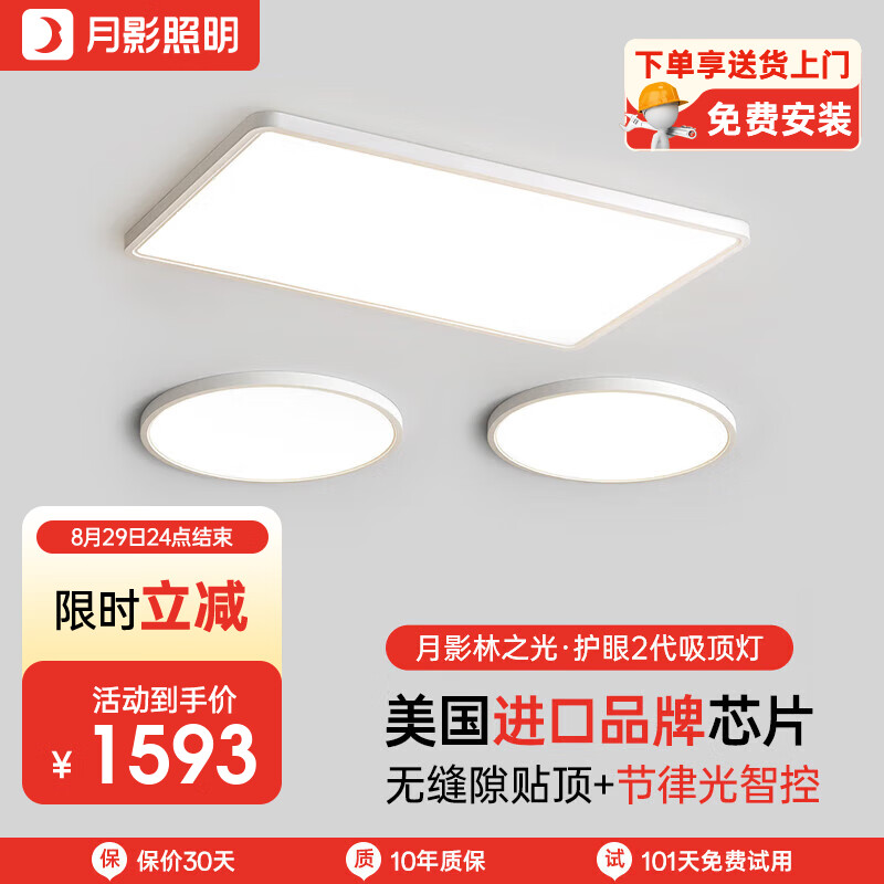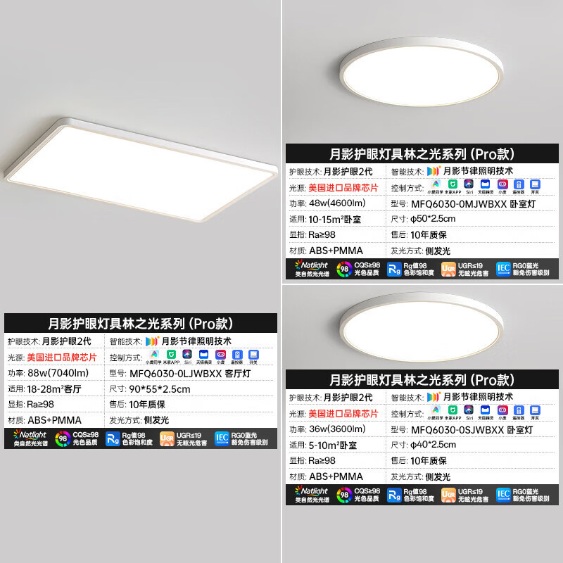月影林之光全光谱护眼客厅卧室吸顶灯现代简约大气中山灯具套餐6030价格:2499.00元!