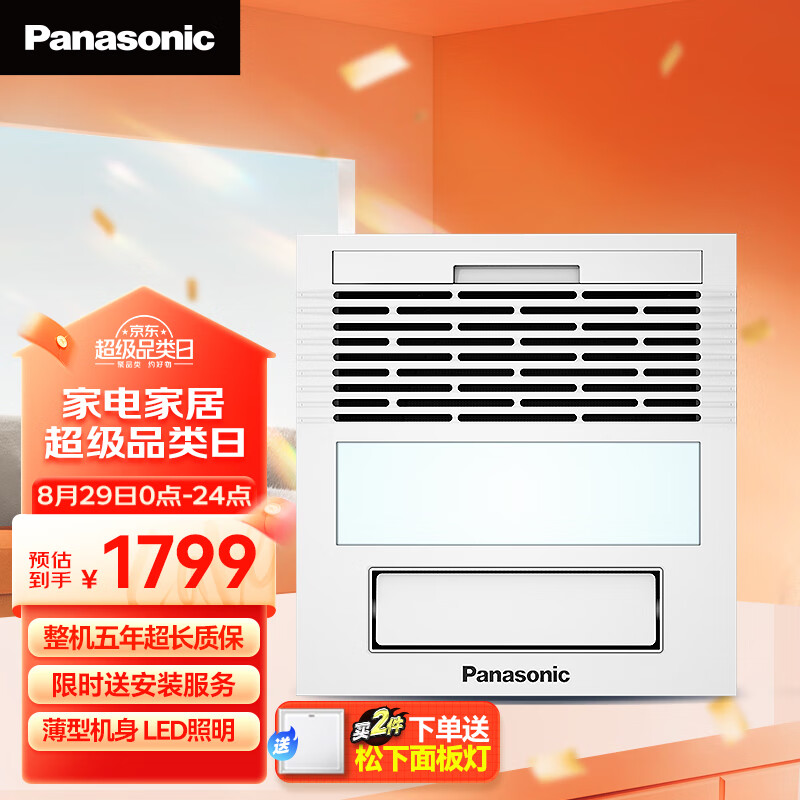松下(Panasonic)风暖浴霸 浴霸暖风照明排气一体 智能控温通用吊顶式 FV-JDBNKL1价格:2299.00元!