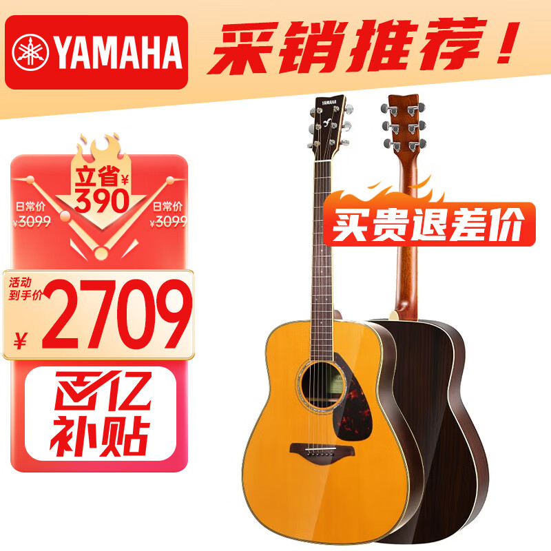 雅马哈(YAMAHA)FG830VN 北美型号 实木单板 初学者民谣吉他41英寸吉它亮光复古色价格:3099.00元!