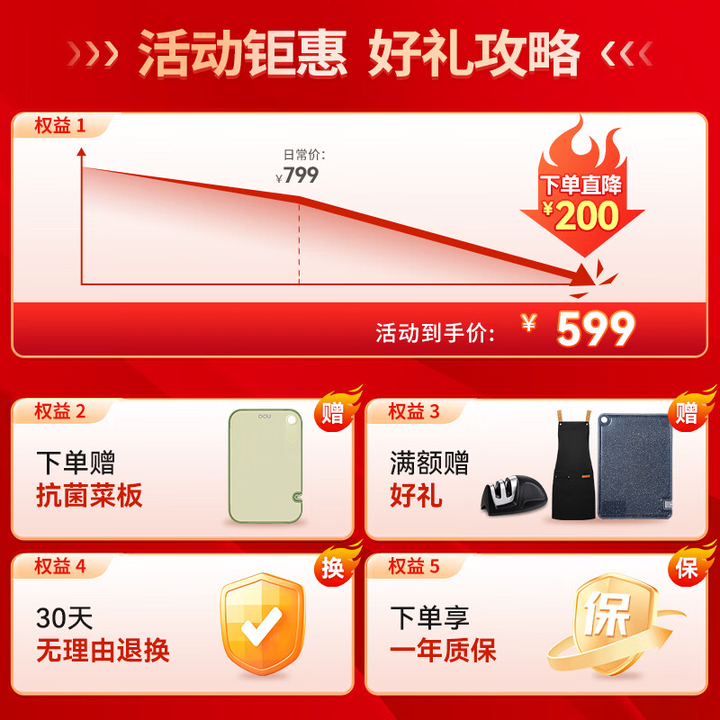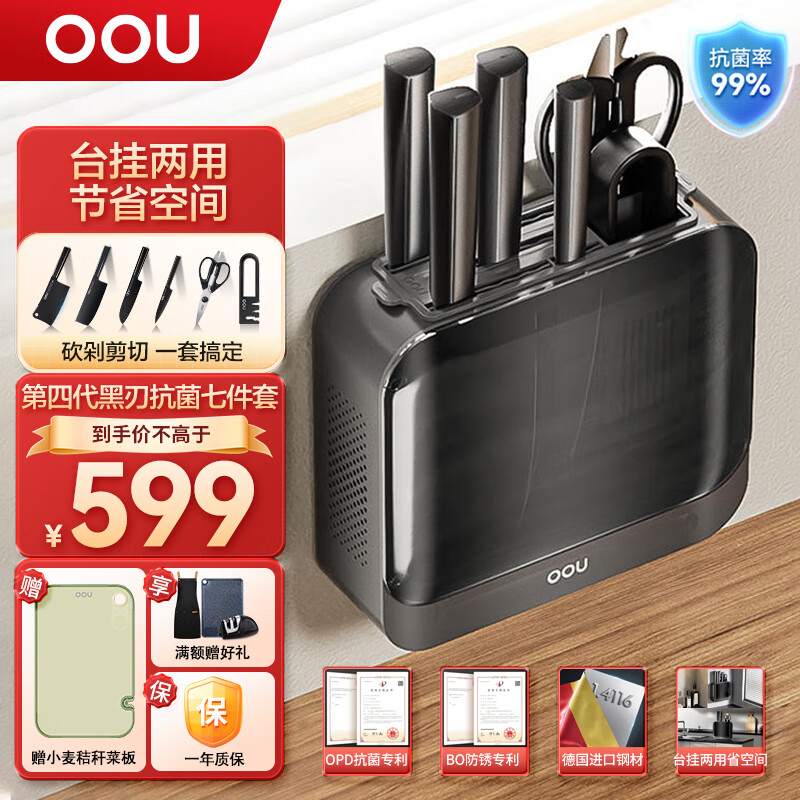 OOU! 厨具厨房刀具套装德国材质抗菌家用切菜刀剪刀带磨刀器7件套价格:799.00元!