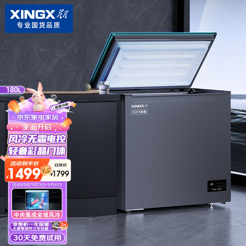 星星(XINGX)180升家用商用风冷无霜茶叶保鲜冰柜 冷藏冷冻转换卧式冷柜 电脑控温节能顶开门冰箱BD/BC-180WKA价格:1499.00元!