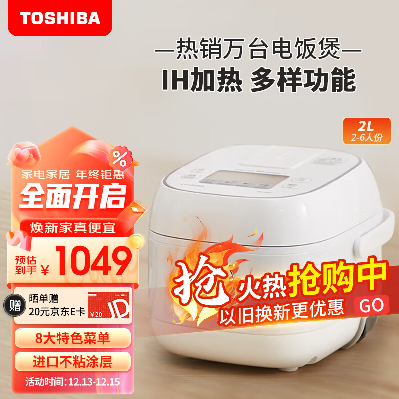东芝(TOSHIBA)鲜饭煲IH多功能电饭煲小型2升智能迷你电饭锅双预约2-4人家用煮饭锅7HMC价格:1049.00元!