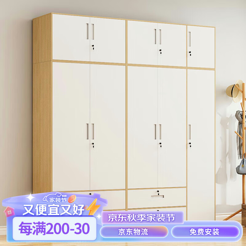 金经金属钢制简约现代衣柜家用收纳卧室小户型组合衣橱2.1米五门四抽+顶柜价格:4138.00元!