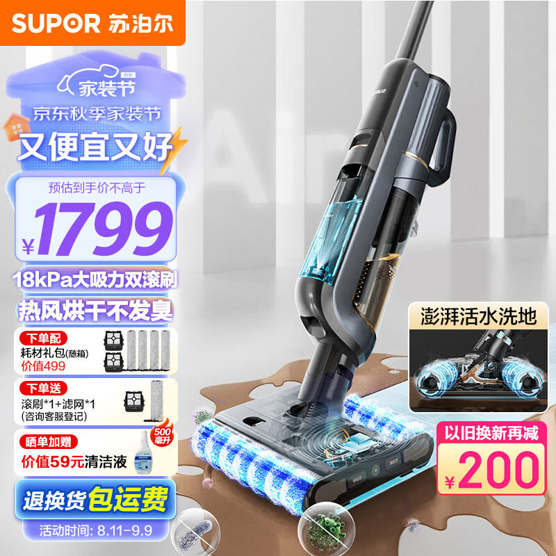 苏泊尔(SUPOR)双滚刷家用洗地机洗拖一体全自动手持电动拖地机无线自清洁烘干擦地吸水式吸尘器洗地机 EWV-D06价格:1799.00元!