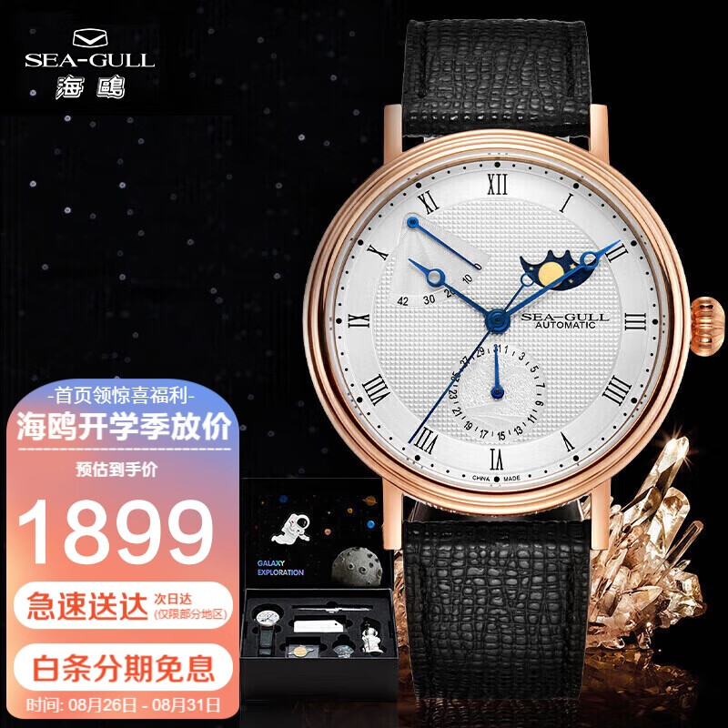 海鸥(SEAGULL)手表男士自动机械表 男表送男友礼物 月相腕表文创礼盒(白金)价格:2109.00元!