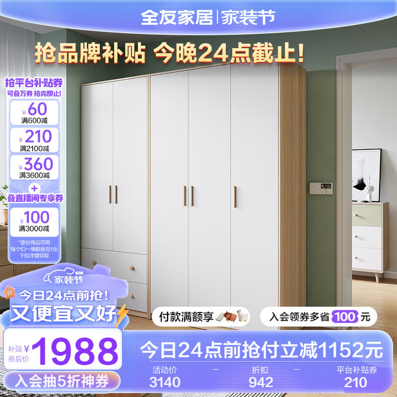 全友家居 现代简约家用衣柜组合收纳柜子落地衣橱卧室储物家具126331价格:3140.00元!