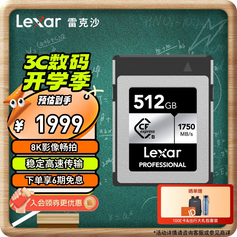雷克沙(Lexar)512GB CFexpress Type B存储卡 读1750MB/s 富士佳能尼康适配 8K超清录制 cfe卡(SILVER) 价格:1999.00元!