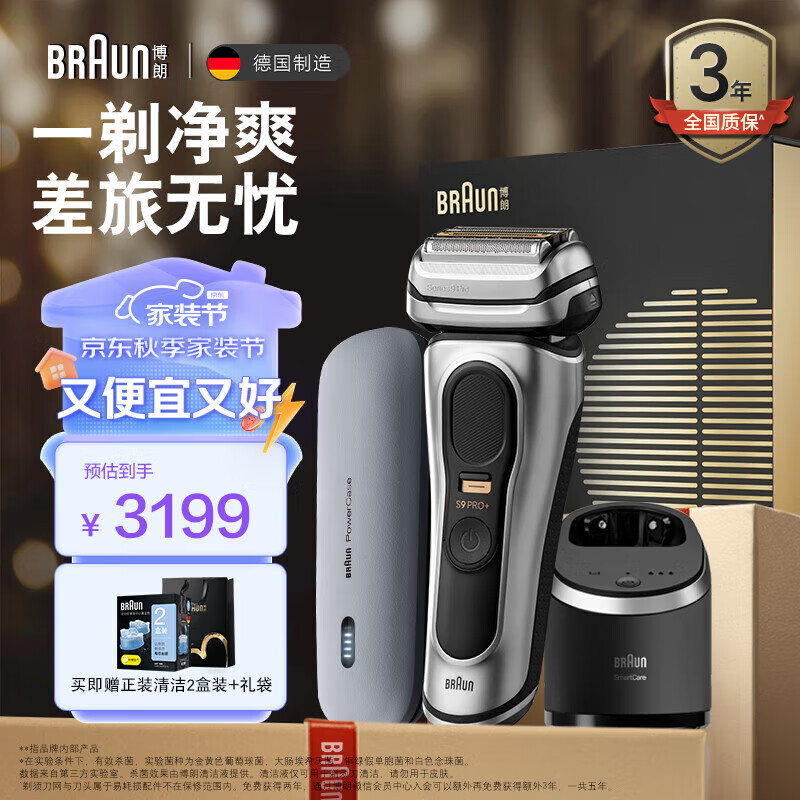 博朗(BRAUN)剃须刀9系9675cc护理中心充电盒礼盒电动剃须刀刮胡刀往复式送老公送男朋友生日礼物价格:3199.00元!