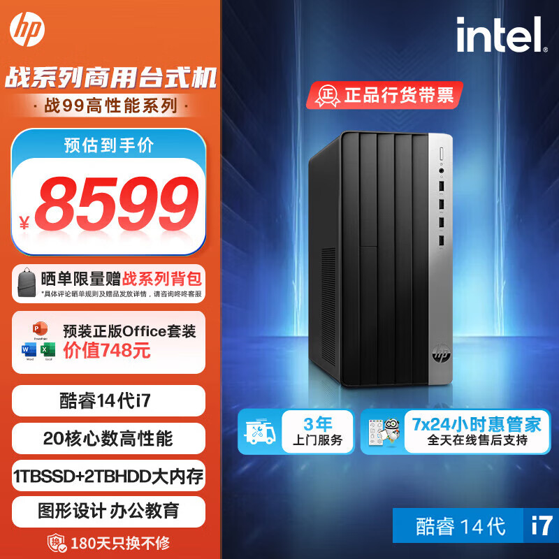 惠普 战99 24款 高性能游戏 台式电脑主机(14代i7-14700 32G 1T+2T RTX4060) Ai大模型 畅玩黑神话价格:8599.00元!