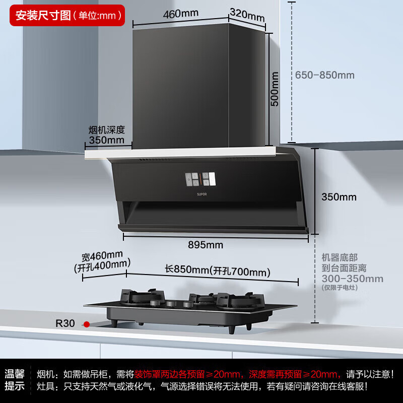 烟机安装尺寸:900±50mm