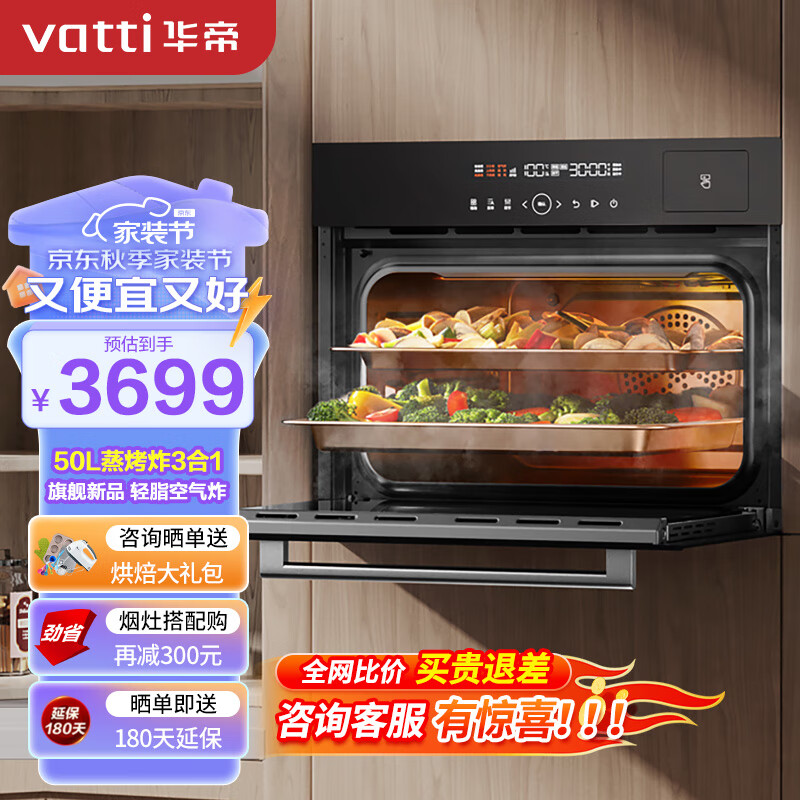 华帝(VATTI)50L蒸烤箱一体机嵌入式家用 蒸烤炸三合一 大容量 烘焙多功能 蒸箱烤箱 搪瓷内胆 i23023价格:3999.00元!
