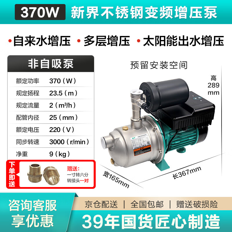 新界变频增压泵家用永磁恒压水泵全自动不锈钢智能自来水管道加压泵 370W变频增压泵价格:1335.00元!