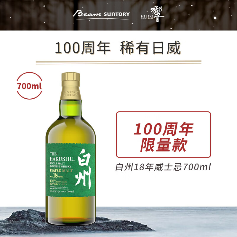 白州(Hakushu)18年 单一麦芽威士忌100周年限量款700ml日本进口威士忌洋酒价格:10888.00元!
