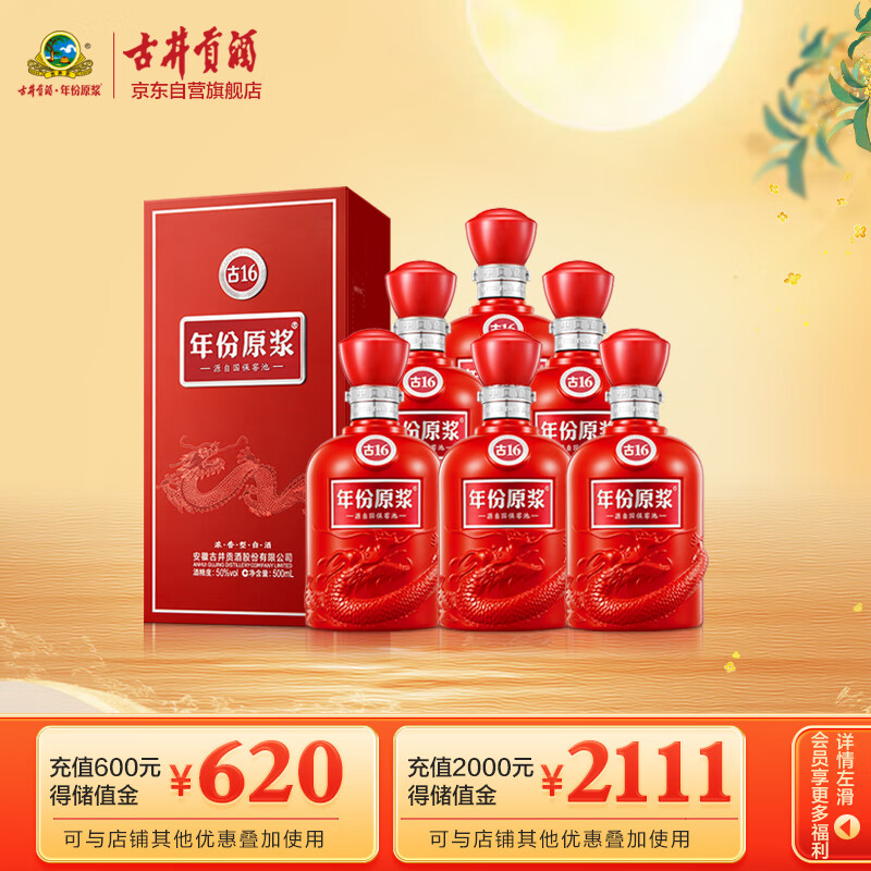 古井贡酒年份原浆古16 浓香型白酒 50度500ml*6瓶 整箱装(内含礼品袋)价格:2424.24元!