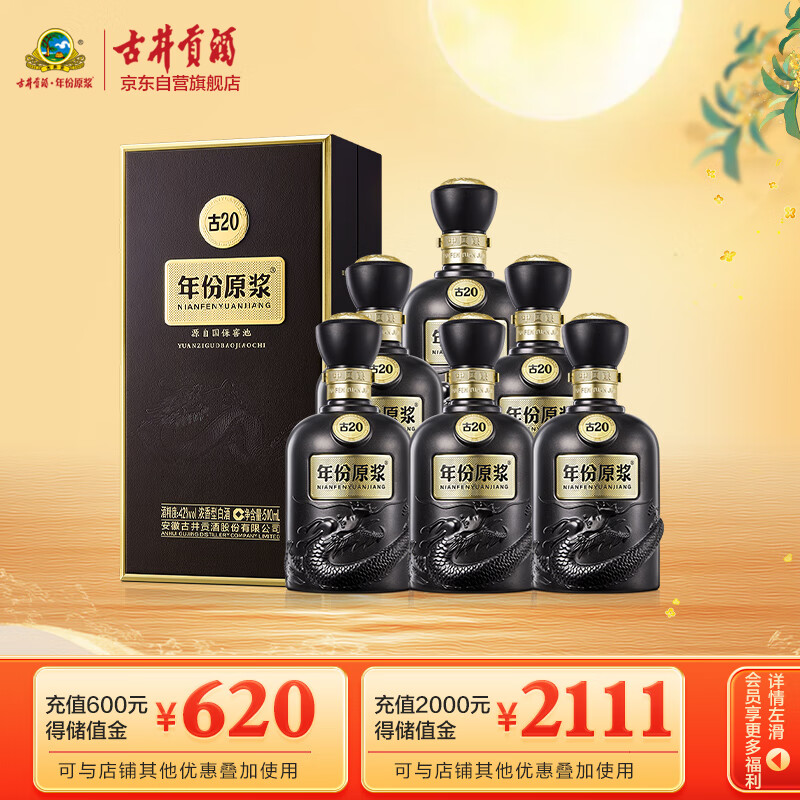 古井贡酒年份原浆古20 浓香型白酒 42度500ml*6瓶 整箱装(内含礼品袋)价格:3757.58元!