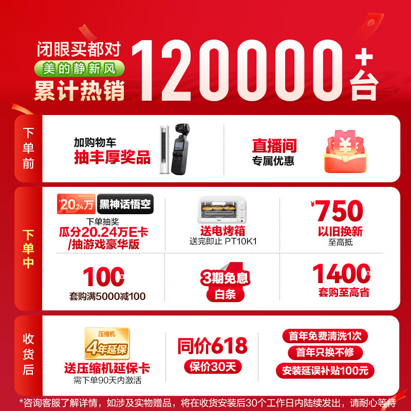 2、颜值很高的空调装上非常满意,静音效果的话是不错的,嗯,然后还有防止吹功能,还有新风可以帮助换一下屋内的空气,嗯,安装师傅非常好。很细心的帮助解决各种问题,总体来说是很满意的。