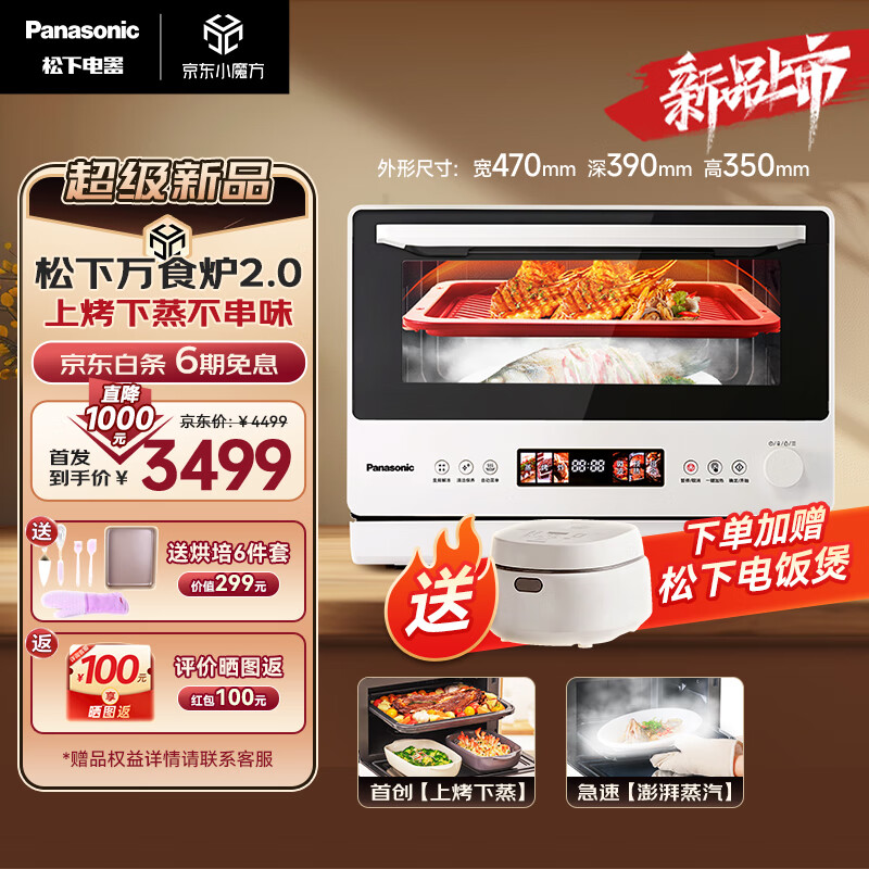 松下(Panasonic)微蒸烤炸一体机 28L家用变频微波炉 蒸烤箱 空气炸 电烤箱 万食炉上烤下蒸 彩屏触控NN-DS285Q价格:3499.00元!
