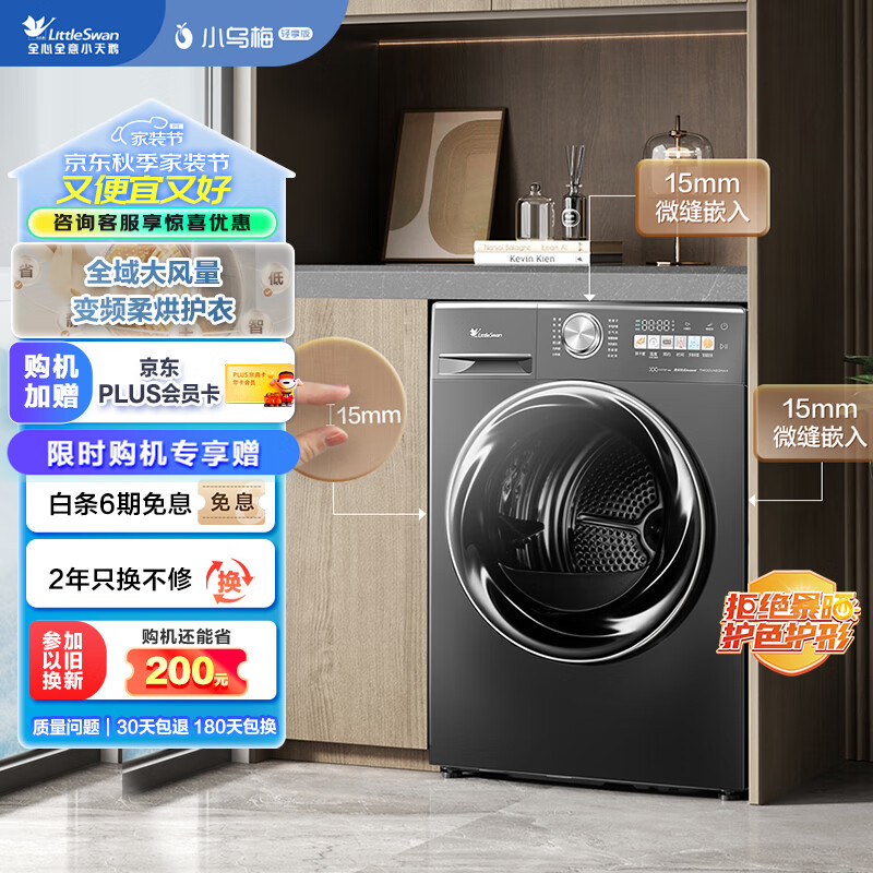 小天鹅(LittleSwan)10KG变频热泵烘干机 干衣机家用 全域大风量 超薄全嵌 毛屑过滤【小乌梅MAX】TH100VH83MAX价格:5999.00元!