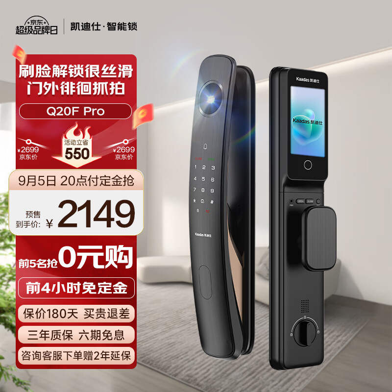 凯迪仕(kaadas)指纹锁可视猫眼监控摄像智能门锁 人脸识别智能锁 Q20F Pro价格:2569.00元!