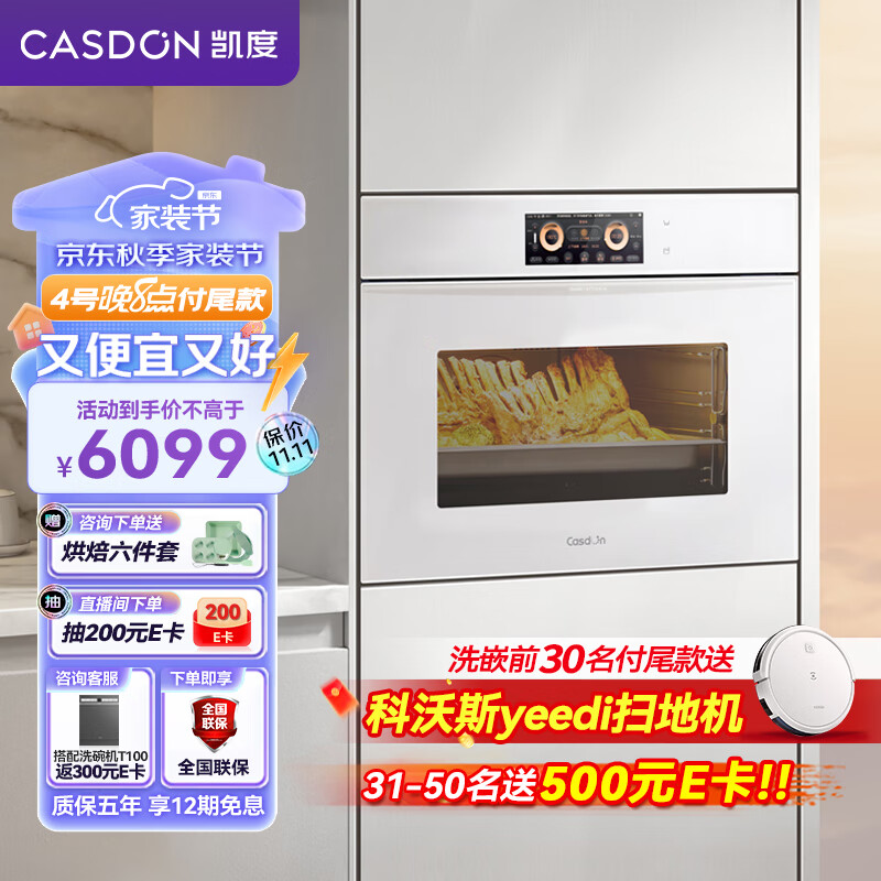 凯度(CASDON)60L彩屏蒸烤箱一体机嵌入式 蒸箱 烤箱 双热风 家用蒸烤炸炖四合一SR6028FE23-ZBPro珠光白价格:6099.00元!