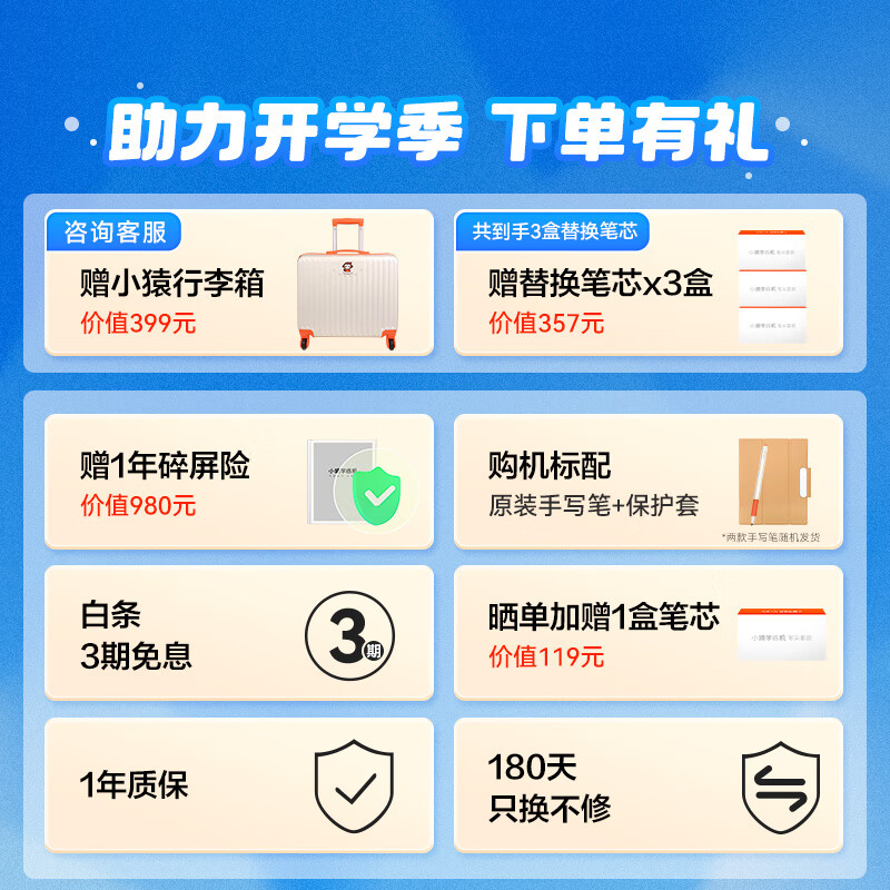 小猿学练机 旗舰款 10.3英寸墨水屏 2024年新课标教材同步 学生平板 AI学习机 智能练习本S2 开学礼物价格:4299.00元!