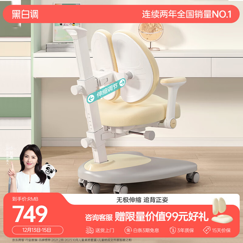 黑白调学习时光学习椅【追背正姿 抑菌乳胶】儿童学习椅学生椅 鲸灵椅PRO 木价格:749.00元!