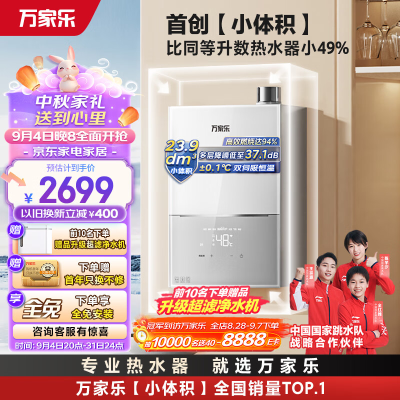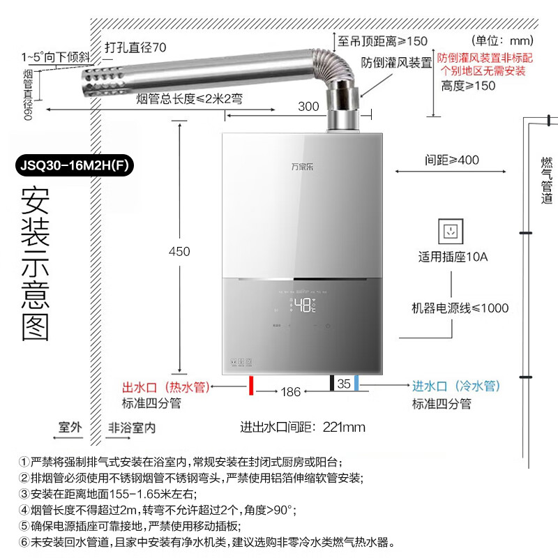 4、非常想买个一级能效的热水器,但可惜精装修,开发商没给装回水管,无法安装零冷水的款式,客服很热心的推荐了这款,这款也不错,普通用量都够用,万家乐也是老品牌啦,性价比很高