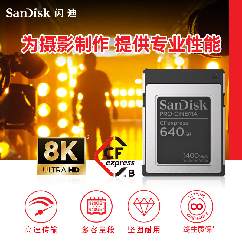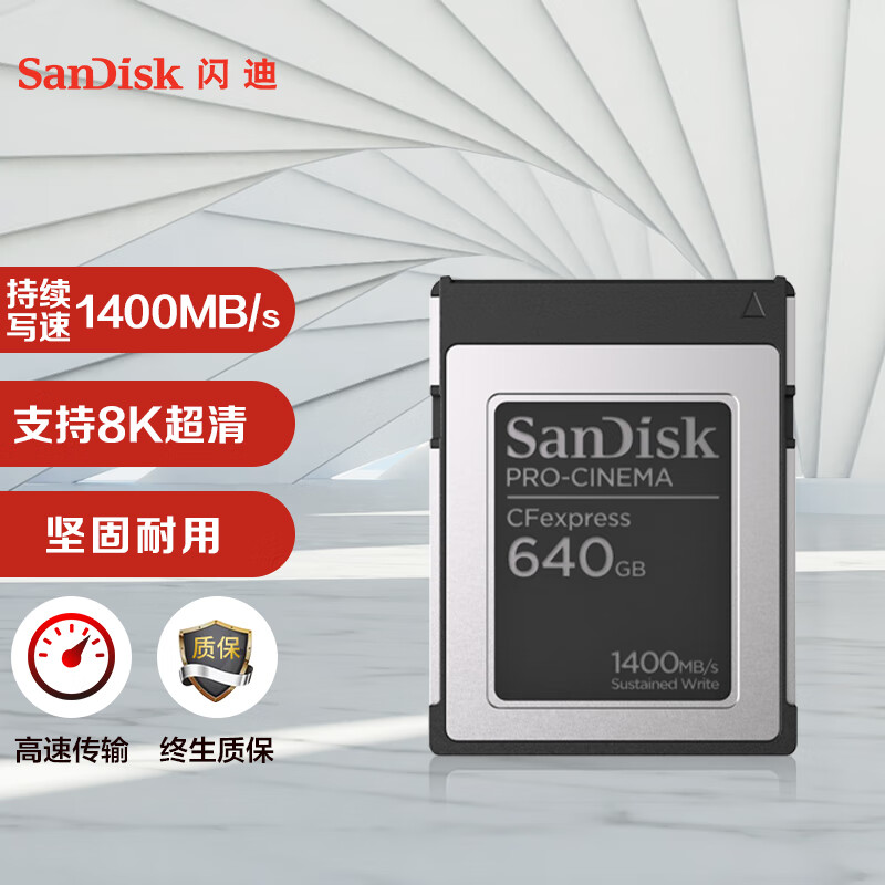 闪迪(SanDisk)640GB CFexpress Type B内存卡 影院级8K视频 读速1700MB/s 持续写速1400MB/s 专业摄影存储卡价格:8981.00元!