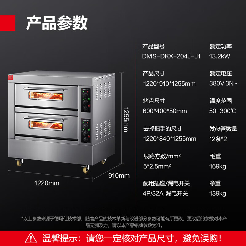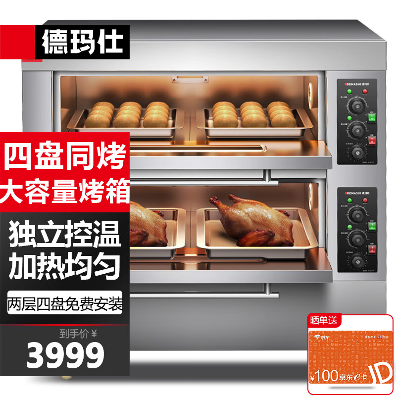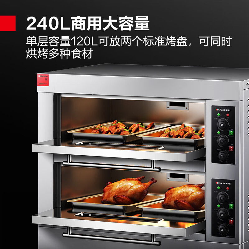 德玛仕(DEMASHI)大型烘焙烤箱商用 烤鸡翅烤全鸡披萨面包蛋糕电烤箱大容量 两层四盘 DMS-DKX-204J-J1价格:3999.00元!