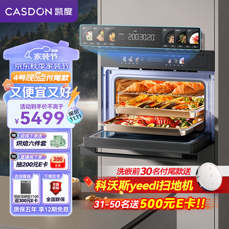 凯度(CASDON)52L嵌入式微蒸烤 双热风 微蒸烤炸炖5合1 WIFI智控 变频微波 蒸烤箱一体机 SR52BW1-GRPro价格:5498.00元!
