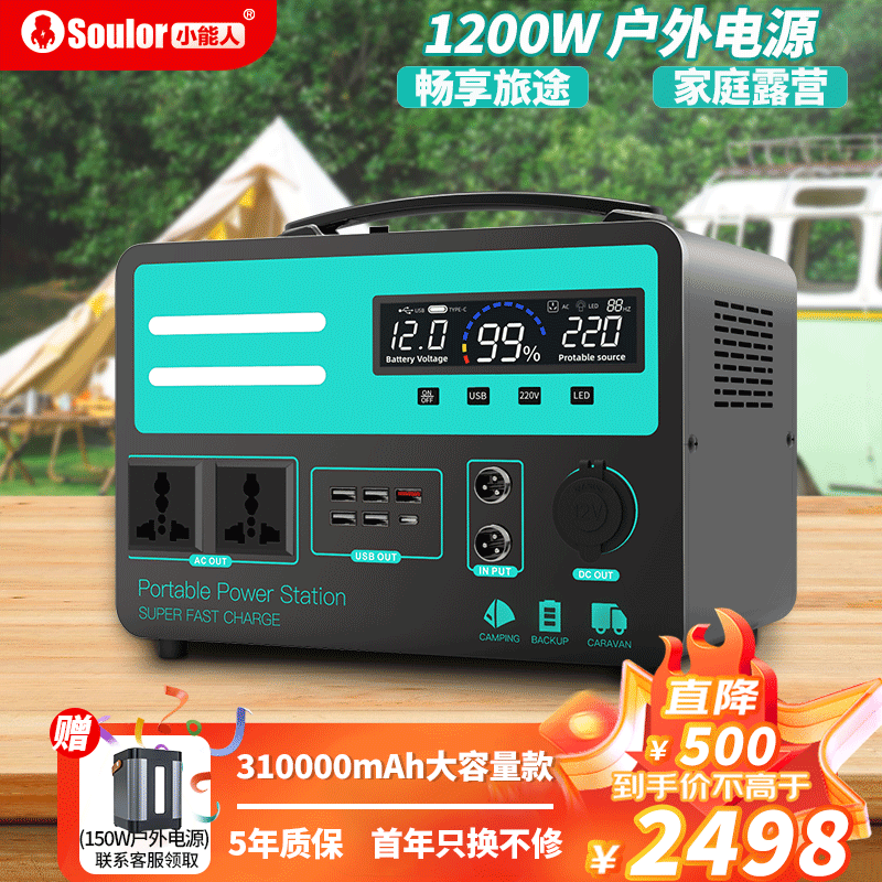 小能人(soulor)户外电源1200W大功率大容量220V充电宝自驾露营停电应急汽车备用价格:2598.00元!