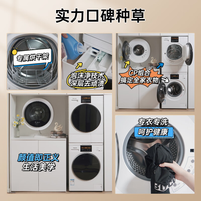 5、第二次购买松下烘干机了因为太好用所以在这边家里又买的这个产品之前买的9kg正好赶上新出的套装就买的10kg颜值高好用客服也很耐心安装师傅也很棒物流超级快