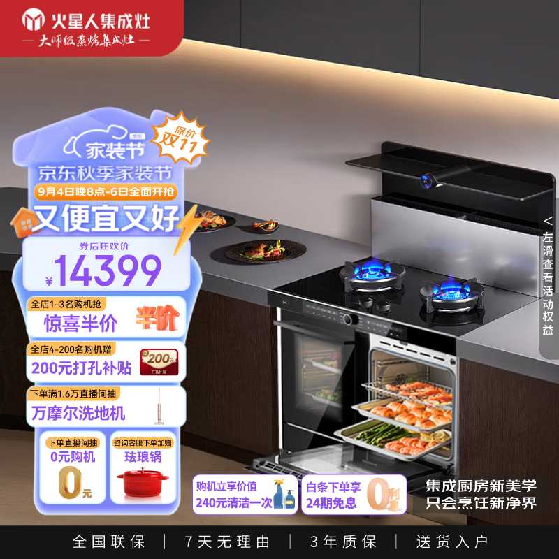 火星人集成灶T70BCZ蒸烤独立集成灶 智能蒸烤炸 家用蒸箱烤箱 燃气灶 液化气价格:14949.00元!