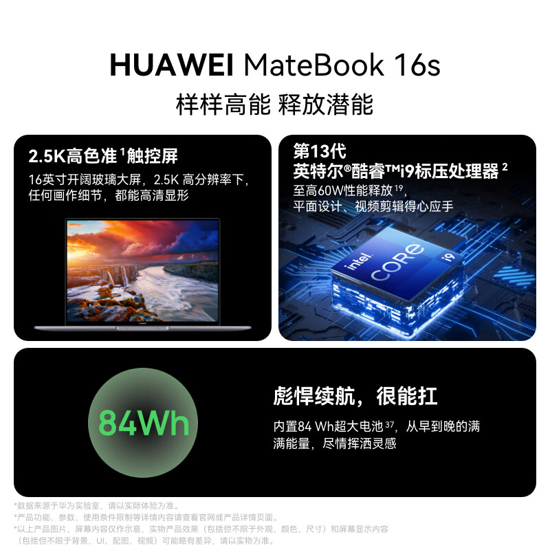 华为MateBook 16s 笔记本电脑 13代酷睿标压处理器/2.5K高色准触控屏/轻薄办公本 i5 16G 1T 深空灰价格:6299.00元!