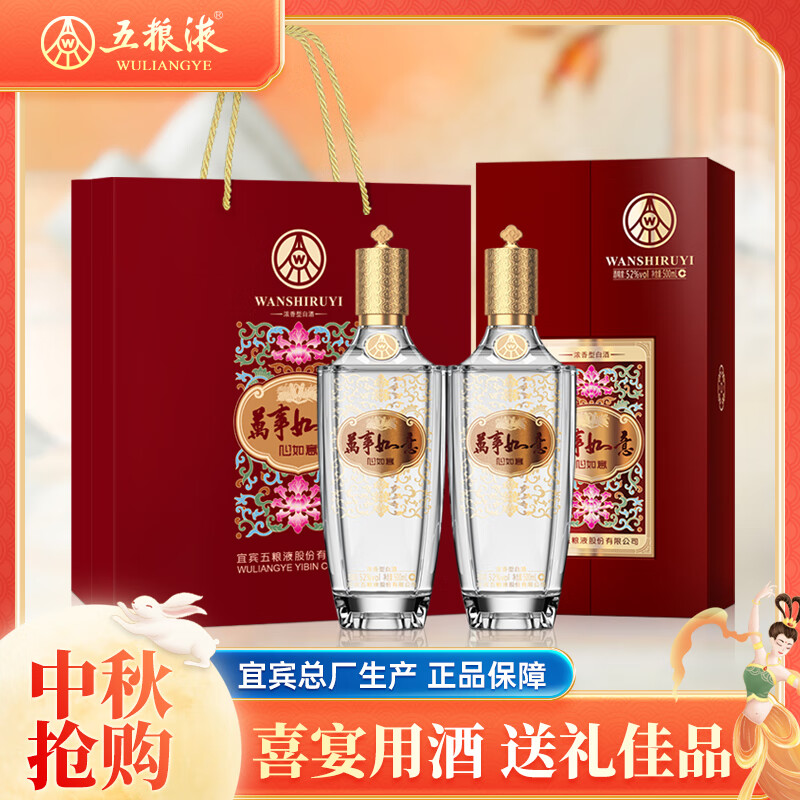 五粮液 中秋送礼 万事如意心如意 固态法浓香型白酒52度500ml*2瓶价格:748.00元!
