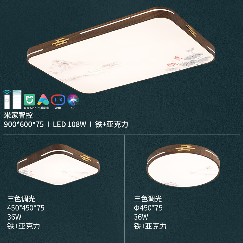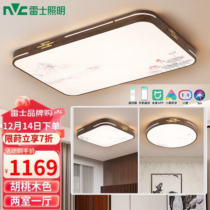 雷士(NVC)吸顶灯客厅灯铁艺复古灯具新中式智能典雅大气套餐WHXD108W/F-04价格:1669.00元!