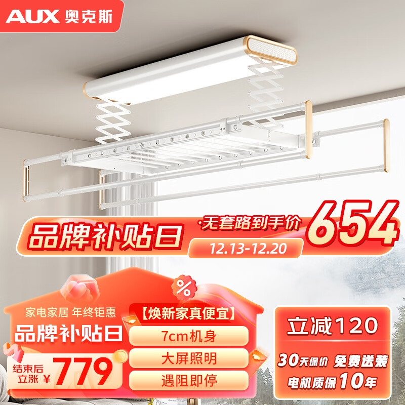 奥克斯(AUX)电动晾衣架升级款自动升降杆阳台室外四杆伸缩无线遥控LED照明白价格:734.00元!