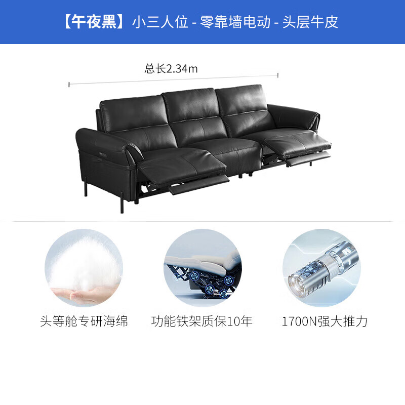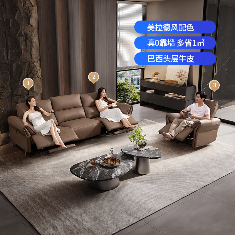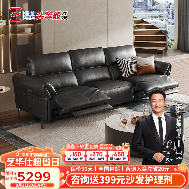 芝华仕(CHEERS)头等舱零靠墙意式轻奢真皮功能沙发美拉德客厅芝华士50795黑三价格:5299.00元!