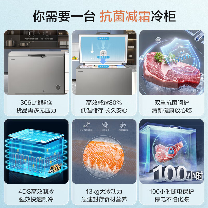真的要说容声(Ronshen)BD/BC-306MSA满意的,价格也很合理的。306超大容量非常喜欢两头猪都能装得下以后封几个月都不用买肉了颜色很喜欢家里冰箱也是容声的冰柜比冰箱装的多食用冰箱还是容量太小了强烈推荐冬天用买个羊装进去