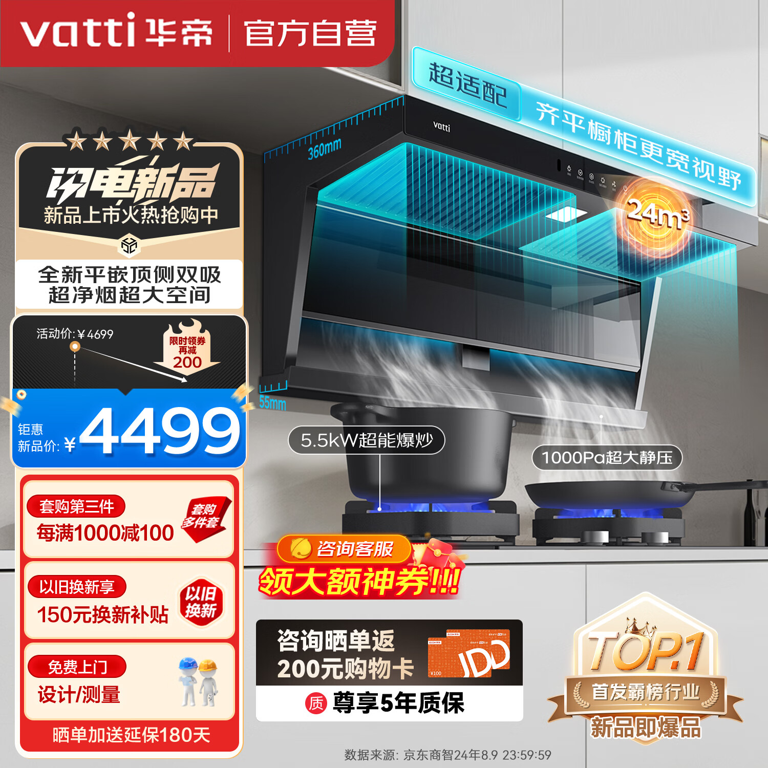 华帝【小飞翼】顶侧双吸24风量脱排抽吸油烟机K6家用大吸力7字型5.5kW爆炒燃气灶具 i11236烟灶套装价格:4999.00元!