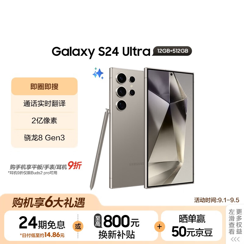 三星(SAMSUNG)Galaxy S24 Ultra AI手机 同声翻译 智能修图 拍照手机 12GB+512GB 钛灰 游戏手机价格:10699.00元!